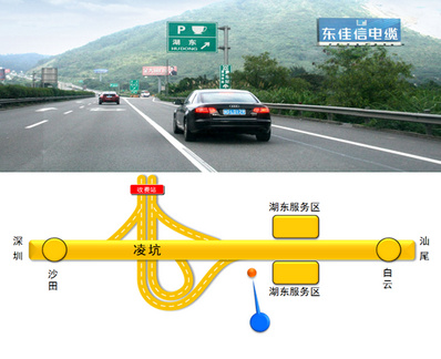 媒體位置說明: 深汕高速公路是由中國(guó)廣東深圳通往中國(guó)廣東汕頭的高速公路,起點(diǎn)於深圳龍崗區(qū)荷坳,終點(diǎn)於汕頭,深圳終點(diǎn)下接機(jī)荷高速公路,汕頭方面接汕汾高速公路。每天的車流量約 8 萬,人流量約 50萬雙向四線行車并有緊急???,沿線設(shè)有多座出入口。 |