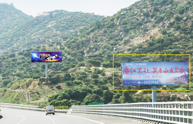 媒體位置:海平互通B17K+200M 媒體形式:雙面立柱廣告牌 媒體規(guī)格:寬18m*高6m*2面 媒體報(bào)價(jià):95萬/年
