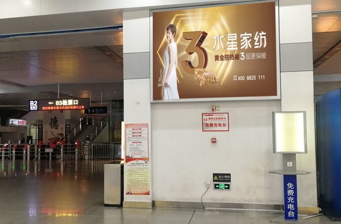 媒體位置/形式:候車大廳南/北面/VIP進(jìn)站口墻面燈箱 媒體數(shù)量:4塊 媒體尺寸:2.4m×8.9m=21.36㎡(2塊)、2.3m×10.8m=24.84㎡(2塊) 媒體報(bào)價(jià):10萬元/月/塊 |