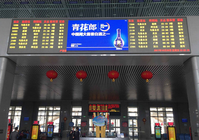 媒體位置:候車廳進(jìn)站廣場正面上部LED屏 媒體編號:HM-L-01 媒體數(shù)量:1塊 媒體尺寸:4*2.2 媒體報價:8元/月/5秒,15萬元/月/10秒,20萬元/月/15秒