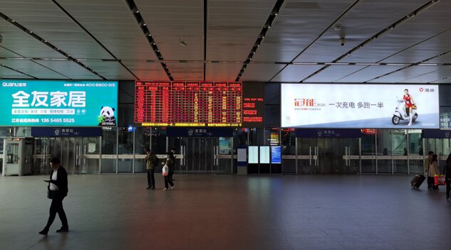 媒體位置: ?????? 進(jìn)站大廳安檢口上方LED屏 ?????? 候車(chē)大廳LED屏 ??????扶梯兩側(cè)LED屏(南進(jìn)站廳)