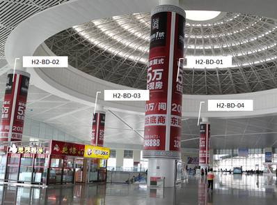 媒體位置/形式:一樓候車(chē)大廳包柱燈箱 媒體編號(hào):HHHTE-H1-BD-(01/04) 媒體數(shù)量:2根(1根/組) 媒體尺寸:3.2*4.06*2面 媒體報(bào)價(jià):20萬(wàn)元/月/組