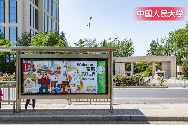 茶派聯(lián)合國內(nèi)34位一流插畫師,共同呈現(xiàn)2023「美好世界」畫展,通過候車亭廣告向大眾展示茶派既有“品味”又有“品位”的品牌底蘊(yùn)。