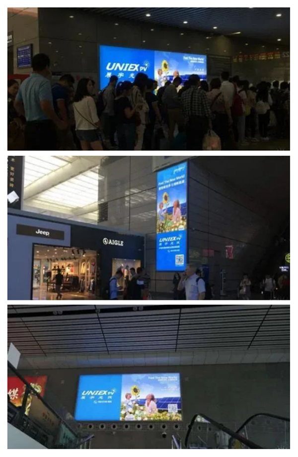 2017年9月,展宇光伏曾入駐江浙滬人流量最大的3個(gè)高鐵站(上海虹橋、南京南站、嘉興南站),在候車室內(nèi)投放高鐵廣告,邁出了品牌宣傳一大步。