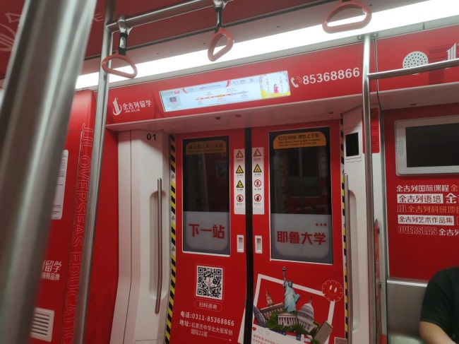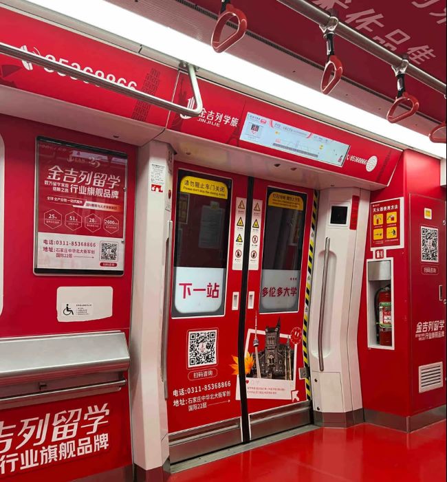 石家莊地鐵1號線全景內(nèi)包車貼案例分享,石家莊地鐵車廂廣告價格
