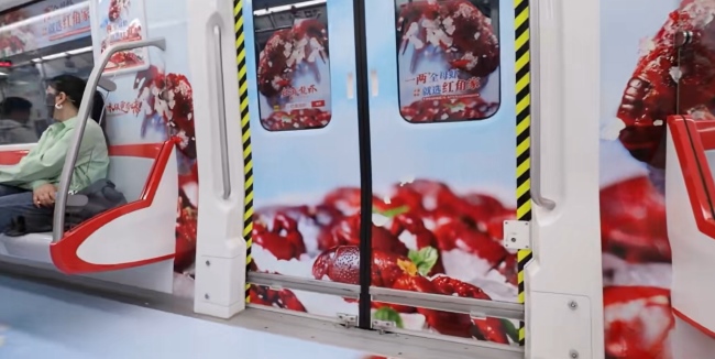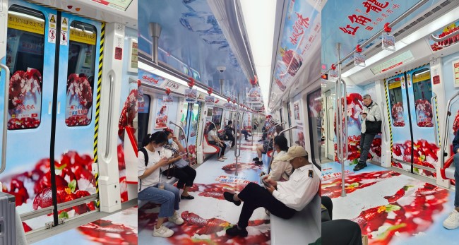 南通地鐵車廂創(chuàng)意全景內(nèi)包車廣告餐飲案例,南通地鐵列車廣告價格