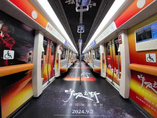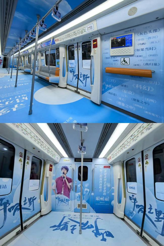 鄭州地鐵1號線內(nèi)包車廣告演唱會案例,鄭州地鐵車廂貼廣告價格