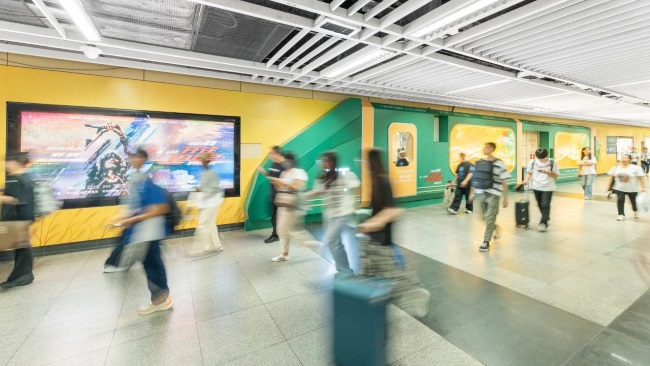 深圳地鐵老街站站臺(tái)層換乘區(qū)域墻貼廣告同時(shí)覆蓋1號(hào)線和3號(hào)線換乘的密集客流,巨大的墻貼廣告形式在老街站與眾不同的站廳換乘區(qū)域形成巨大的品牌空間,連續(xù)的品牌長(zhǎng)墻可承載更豐富的內(nèi)容,超長(zhǎng)時(shí)間吸引往來(lái)乘客注意力。