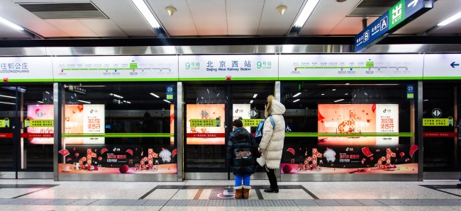 北京地鐵屏蔽門貼以及站臺軌行區(qū)聯(lián)排燈箱廣告,以透明玻璃貼和發(fā)光燈箱的廣告形式在站臺層展現(xiàn)連貫畫面內(nèi)容,廣告存在感強、到達率高,具有直觀有效的宣傳效果。