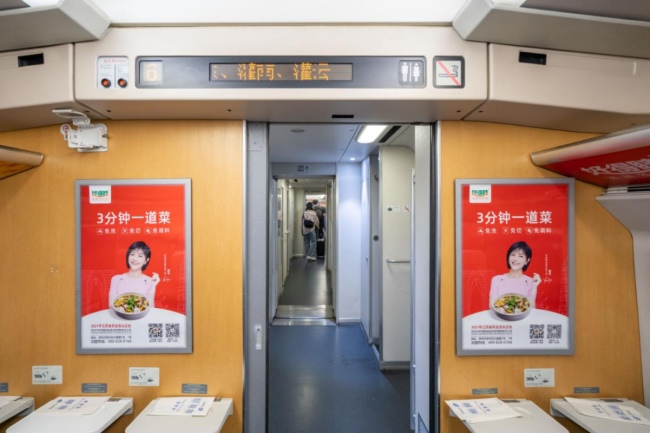 高鐵廣告的眾多廣告展示形式也具有其獨特的優(yōu)越性。從列車車廂內(nèi)的頭枕巾、座椅背板、車廂行李架彩貼、車廂海報、列車電視屏、列車語音播報到列車外車身彩貼等廣告。這些多樣化的廣告形式可以吸引不同類型的乘客注意力。高鐵廣告的持續(xù)性和長時間曝光,使其具有很強的品牌強化作用。乘客在長途旅程中,無論是視線掃過還是停留,都能加深對品牌的記憶,從而產(chǎn)生更深刻的品牌印象。
