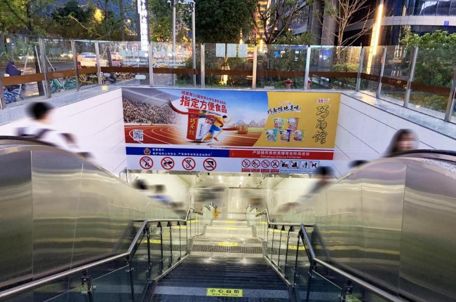成都地鐵出入口扶梯正對梯楣廣告