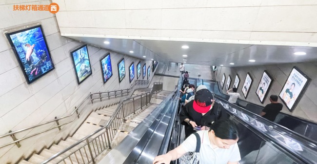 北京地鐵國貿(mào)站出入口超大扶梯燈箱廣告的視覺沖擊力強,利用了扶梯這一移動媒介,使得廣告的展示空間得到了有效擴展。超大燈箱能夠通過強烈的視覺沖擊吸引過往乘客的注意力,尤其是在乘客上下扶梯時,廣告能夠持續(xù)存在于視線中,增強廣告的記憶度。