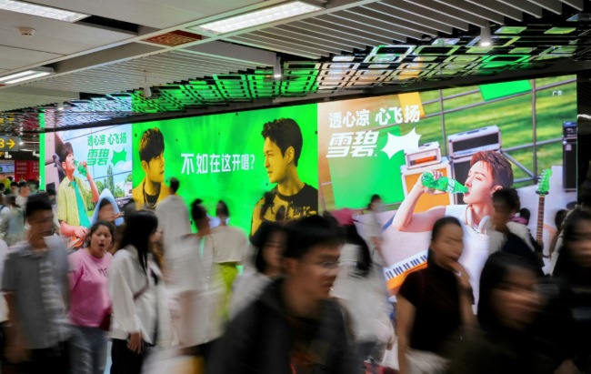 - 貴陽地鐵換乘站廳中央的品牌畫卷:噴水池站墻貼燈箱廣告2026-02-28