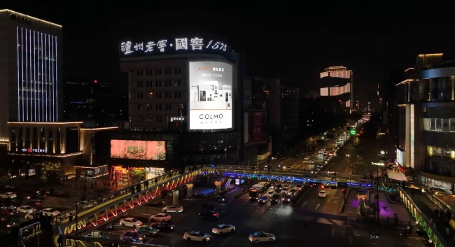 ? 杭州之窗:位于武林廣場(chǎng)浙江文化大廈,屏幕為高清LED mesh屏,寬40m*高32m,播放時(shí)間7:00-22:30。