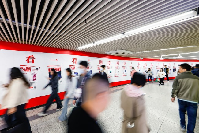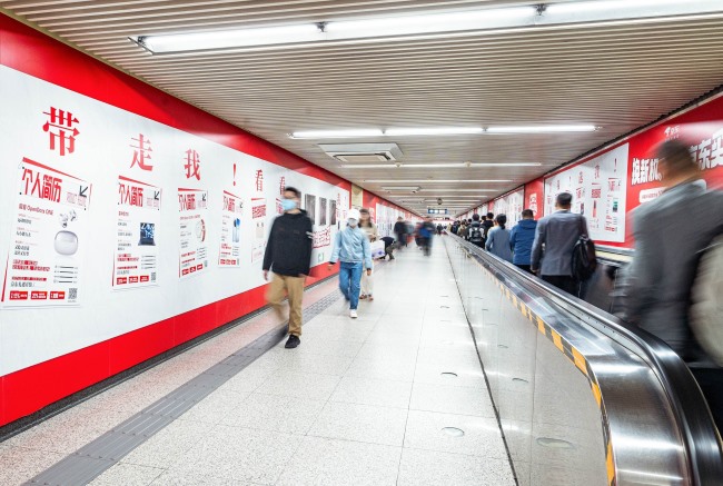 媒體形式:北換乘通道南、北墻墻貼+北墻超大看板6塊