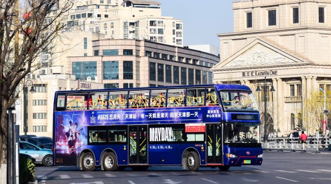 天津雙層觀光車身外車貼巴士廣告投放,天津公交車廣告價格