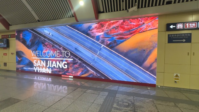 北京地鐵王府井站廳換區(qū)域墻面LED大屏廣告