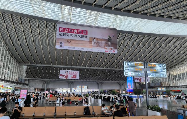 廈門(mén)北高鐵站候車(chē)大廳上方吊旗廣告投放,廈門(mén)北站大屏廣告
