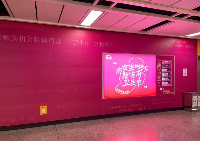 佛山地鐵2號線廣州南站站廳層品牌墻廣告形成入口視覺沖擊,第一時間捕獲換乘客流注意力;構(gòu)建候車沉浸空間,旅客在安檢后放松狀態(tài)下深度接觸廣告,強化品牌認(rèn)知。掃碼購買行為沉淀用戶數(shù)據(jù),為效果轉(zhuǎn)化提供支撐。相比傳統(tǒng)地鐵媒體,品牌墻單位面積成本更低。