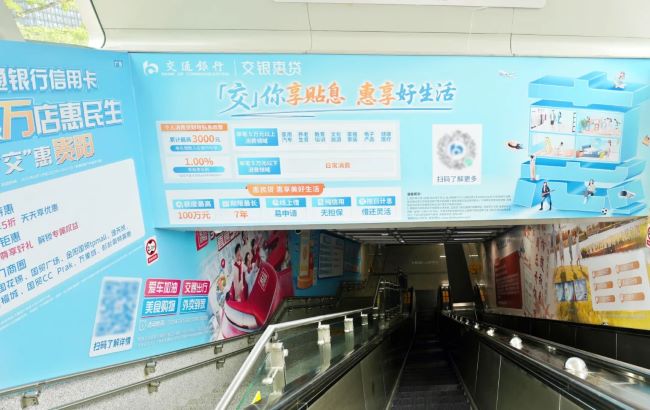 貴陽地鐵站出入口扶梯U型品牌入口廣告通過入口梯楣、兩側(cè)滿貼墻貼及梯牌的媒體組合,在出入口扶梯區(qū)域形成一個(gè)U型環(huán)繞的視覺空間。品牌信息能夠從多個(gè)角度進(jìn)行傳遞,創(chuàng)造出沉浸式的品牌展示環(huán)境,視覺信息完整且沖擊力強(qiáng)。地鐵出入口恰好位于乘客行程開始與結(jié)束的關(guān)鍵節(jié)點(diǎn)。乘客在乘坐扶梯時(shí),處于緩慢移動(dòng)且視線方向相對(duì)穩(wěn)定的狀態(tài),為廣告內(nèi)容提供了充分的視覺接觸時(shí)間,確保了信息的有效觸達(dá)。