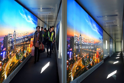 媒體名稱:國內出發(fā)內廊橋套裝1、套裝2 媒體類型:內廊橋超薄燈箱 媒體數(shù)量:12塊/套(共24塊) 媒體尺寸:6*2.1/塊 媒體報價:18萬元/套/月 制作費:咨詢第一戶外 |