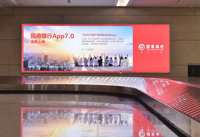 媒體位置:T2到達(dá)行李廳,最中央行李轉(zhuǎn)盤(pán)墻面燈箱