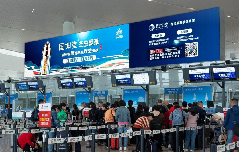 溫州機(jī)場(chǎng)廣告投放案例圖-出發(fā)區(qū)燈箱 |