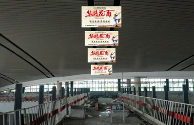 敦煌機(jī)場廣告投放案例圖-到達(dá)區(qū)吊旗 |
