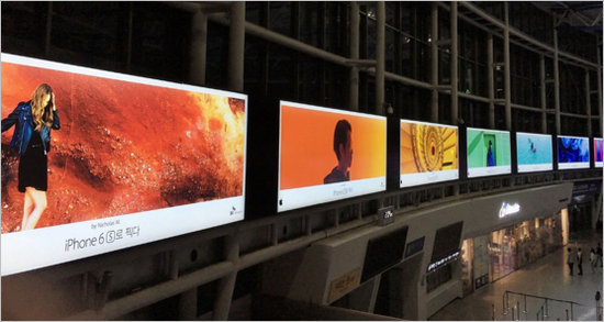7月,蘋(píng)果公司又開(kāi)始了新一輪的廣告轟炸,這一次主題名為 “Colors(色彩)”,仍然以用iPhone手機(jī)拍攝的照片為廣告畫(huà)面,不同的是,這次的廣告投放多以燈箱、大牌為主,而且聯(lián)裝燈箱一發(fā)就是一大串,赤橙黃綠青藍(lán)紫亮成一道彩虹。