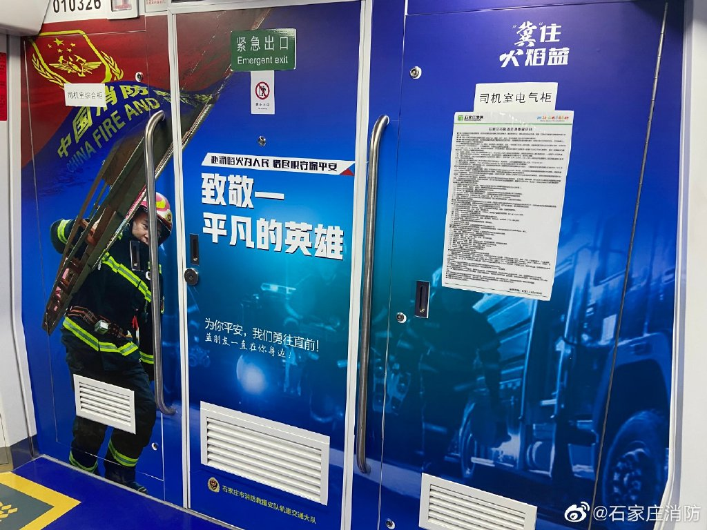 #石家莊地鐵消防主題專列亮相#地鐵列車廣告致敬平凡英雄