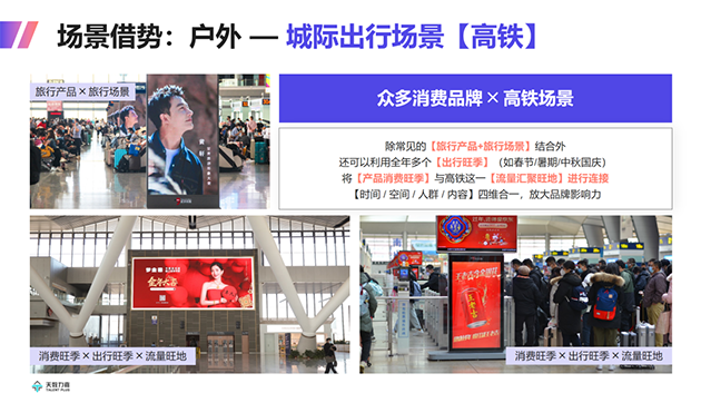 天然覆蓋海量受眾的真實(shí)場景,一直是戶外媒體相較于其他媒體的顯著優(yōu)勢。立足品牌特性,將傳播內(nèi)容與媒體場景有效融合,鏈接場景內(nèi)可感知的真實(shí)流量,借助戶外媒體一對多傳播的放大效應(yīng),進(jìn)一步提升品牌在公域營銷的曝光效率,為品牌增勢賦能。