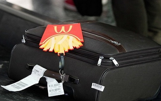 廣州麥當(dāng)勞跑到了白云機場,偷偷給旅客的行李系上了各種吊牌,薯條、冰淇淋、咖啡、可樂……幸運旅客可以憑吊牌在任意一家麥當(dāng)勞免費兌換相應(yīng)美食。