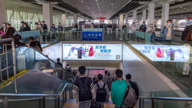 廣州南高鐵站站臺(tái)到達(dá)扶梯廣告投放,廣州南站燈箱廣告價(jià)格
