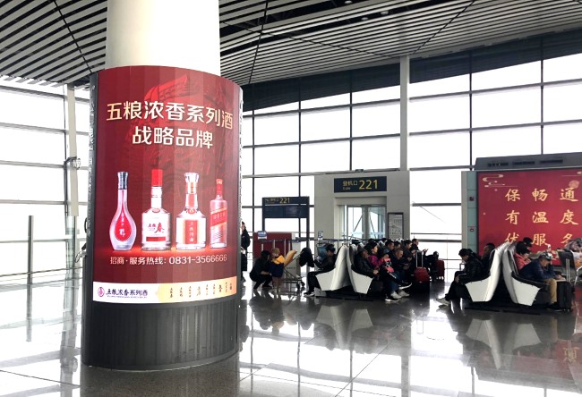 天津機場T2出發(fā)候機大廳包柱LED大屏廣告