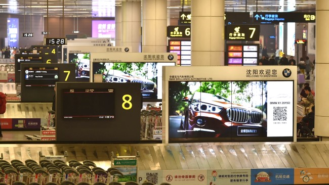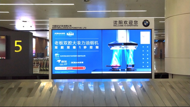 沈陽機(jī)場國內(nèi)國際到達(dá)行李轉(zhuǎn)盤上方ADF大屏廣告