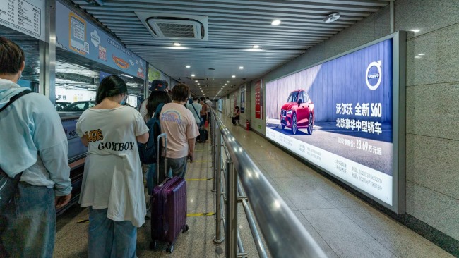 北京南站到達層出租車等候區(qū)通道墻面燈箱廣告
