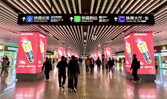 - 候車大廳幾何中心的品牌陣列:廣州白云站三角立柱燈箱廣告2026-02-25