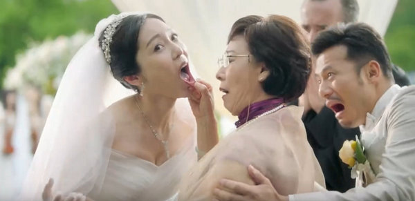 2. 這條廣告中,婚禮新人正要宣誓時(shí),婆婆突然沖上臺(tái),在眾人目瞪狗呆之下對(duì)新娘捏鼻子、扯耳朵、查牙口、揉下巴,然后對(duì)兒子比出OK的手勢(shì)。視頻將新郎比作購(gòu)車者、新娘比作二手車、婆婆比作奧迪官方。廣告語(yǔ):重要決定必須謹(jǐn)慎,奧迪二手車在線4S店,官方認(rèn)證才放心。
