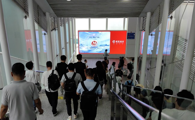 ??跂|站出站口扶梯正對LED大屏廣告單屏橫長4.9m高度2.5m,單塊廣告展示面積超12平方米,垂直覆蓋1.5-4米視域,適配站立及行李拖行多形態(tài)視線扶梯下行耗時8-10秒,形成深度曝光窗口。LED大屏與出站導(dǎo)視系統(tǒng)形成視覺協(xié)同,旅客尋找接駁工具時,廣告信息深度融入場景需求鏈。??跂|站出站通道周邊無商業(yè)分流設(shè)施,廣告視覺獨占性較候車區(qū)提升90%。單屏日均540次輪播,雙屏組合單日總曝光量超1000次,密集時段曝光頻次達(dá)20次/小時。
