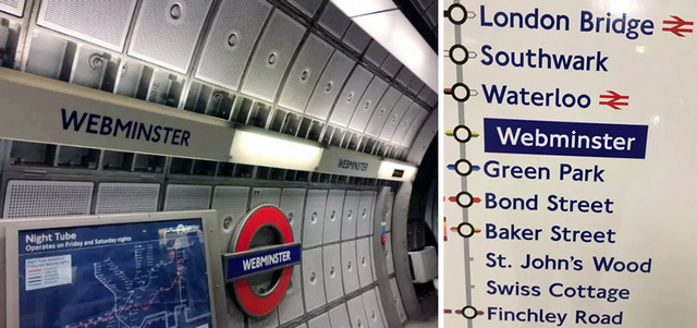 2. 為了向世界宣告自己的新數(shù)據(jù)中心和云服務能力有多強,亞馬遜把倫敦地鐵的Westminster(威斯敏斯特站)改成了Webminster。這是一個合成詞,web意為網站,minister意為總理。
