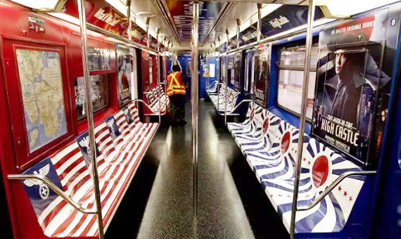 9. 亞馬遜做過的另一次更囂張的爭議廣告,是在紐約地鐵做的創(chuàng)意內包車廣告,整車都印滿了納粹帝國和日本帝國的圖案,就為了給自制劇《高堡奇人》做廣告。這部架空劇虛構了一個德日在二戰(zhàn)中勝利并占領了美國的故事,(想想就刺激)。