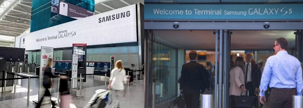 12. 從航站樓名稱大牌,到內外所有名稱標志物,都改成了“Galaxy S5航站樓”,甚至樓內樓外所有廣告位都被三星占領了!讓對手根本無處插足。