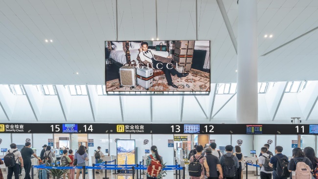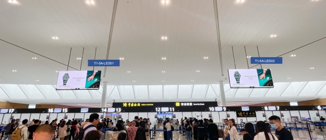 成都天府機(jī)場(chǎng)T1國(guó)際出發(fā)安檢口上方LED大屏廣告
