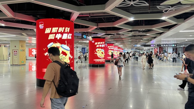 深圳東站負一層進出站換乘大廳包柱LED大屏廣告7柱聯(lián)排全域覆蓋,103.49㎡聯(lián)排組合排列形成視覺矩陣,旅客無論行進方向均被動態(tài)畫面包圍,規(guī)避視線死角,信息觸達率較單柱媒體提升 3倍以上。換乘大廳為相對封閉空間,旅客視線自然聚焦導視系統(tǒng)與立柱區(qū)域,7根包柱憑借布吉地鐵站交匯處的樞紐核心區(qū)位,包柱設計完美契合換乘大廳立柱結(jié)構(gòu),在有限空間中最大化利用垂直界面。