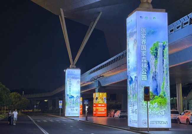 張家界機(jī)場到達(dá)門廊戶外包柱廣告投放,張家界荷花機(jī)場廣告