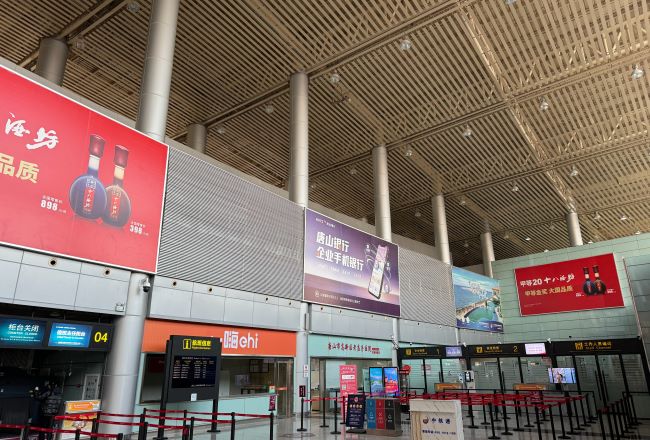 唐山機(jī)場(chǎng)一層出發(fā)大廳值機(jī)柜臺(tái)上方大牌廣告