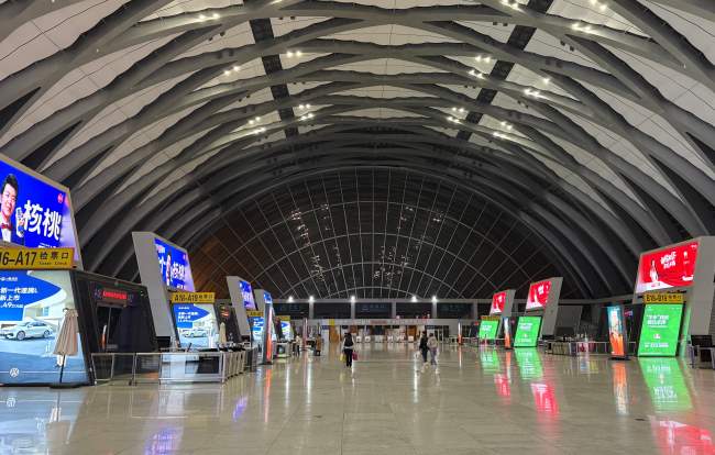 - 候車大廳幾何中心的品牌陣列:廣州白云站三角立柱燈箱廣告2026-02-25