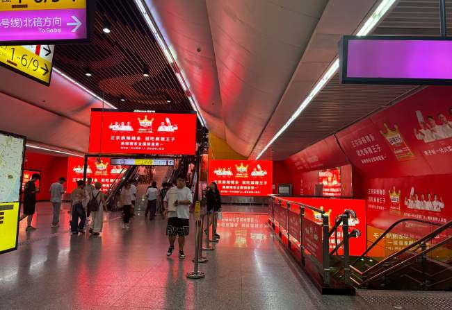 - 候車大廳幾何中心的品牌陣列:廣州白云站三角立柱燈箱廣告2026-02-25