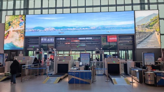 臺州西站出發(fā)進(jìn)站安檢口LED刷屏機(jī)廣告