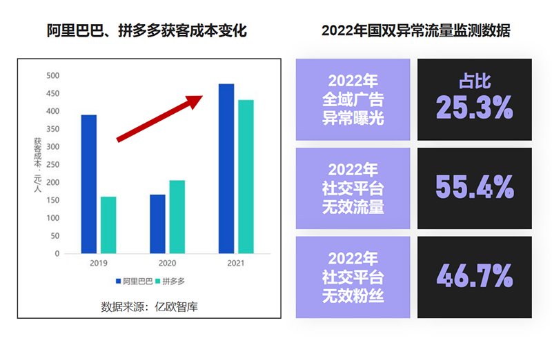任何紅利都有窗口期,當(dāng)紅利被越多人發(fā)現(xiàn),打法被越多人模仿,靠紅利帶增長(zhǎng)的路徑就越發(fā)擁堵,互聯(lián)網(wǎng)進(jìn)入存量市場(chǎng),流量成本上升疊加異常流量大量存在,買(mǎi)量就能帶轉(zhuǎn)化的狂飆時(shí)代已成過(guò)去。